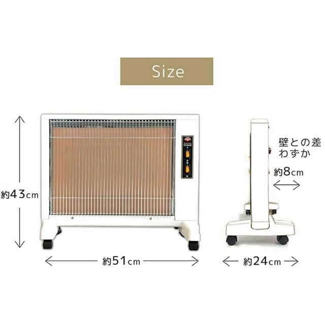 ☀【商品情報】サイズ:幅51×奥行23.6×高さ43cm / 重量:約7kg / 消費電力:(強)800W (弱)400W 2段切替 / 推奨適用畳数:8畳(高断熱住宅) / メーカー品質:3年間