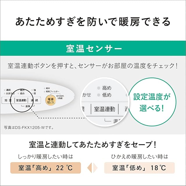 パナソニック セラミックファンヒーター 加湿機能付 ひとセンサー付 ナノイー搭載 ブラック DS-FKX1205-K