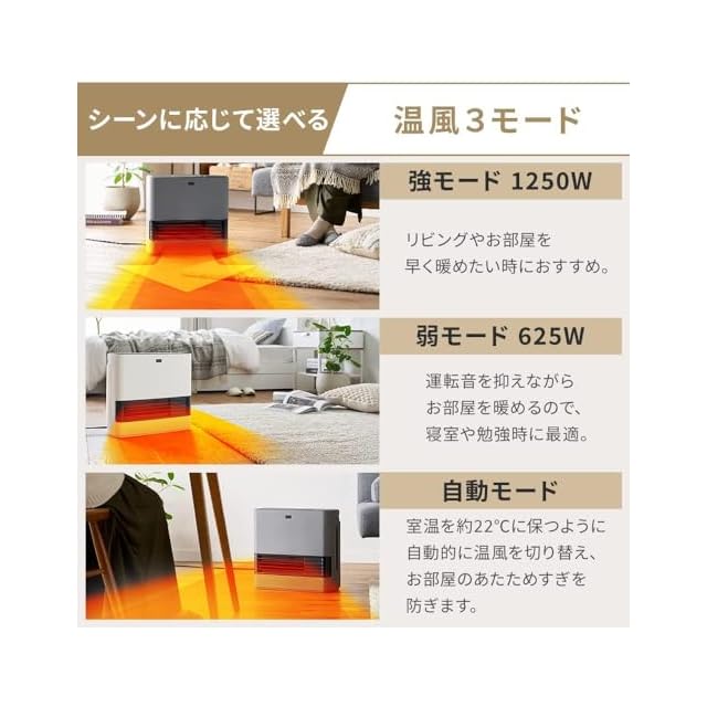 ◆セラミックファンヒーターとして。お部屋がすぐに暖まる大風量。吹き出し口がワイドになって暖かさがより広がる。