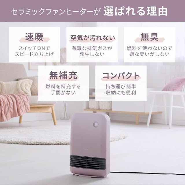 大風量セラミックファンヒーターが新しいカラーでリニューアルしました。コンパクトで軽いからお部屋の移動もラクラク。