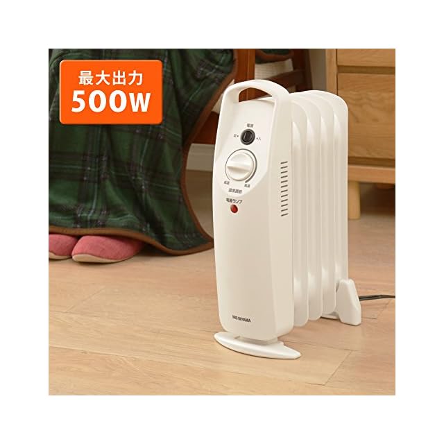 アイリスオーヤマ ヒーター オイルヒーター 3.3畳 ウェーブ型 500W 小型 コンパクト 温度調節可能 転倒オフ機能 メカ式 足元 省エネ 暖房 POH-505K-W ホワイト