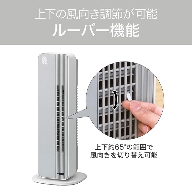 コイズミ 扇風機 タワーファン ホット&クール 送風 温風 1台2役 熱中症アラート機能 人感センサー 自動首振り DCモーター ライトグレー KHF-12243/H