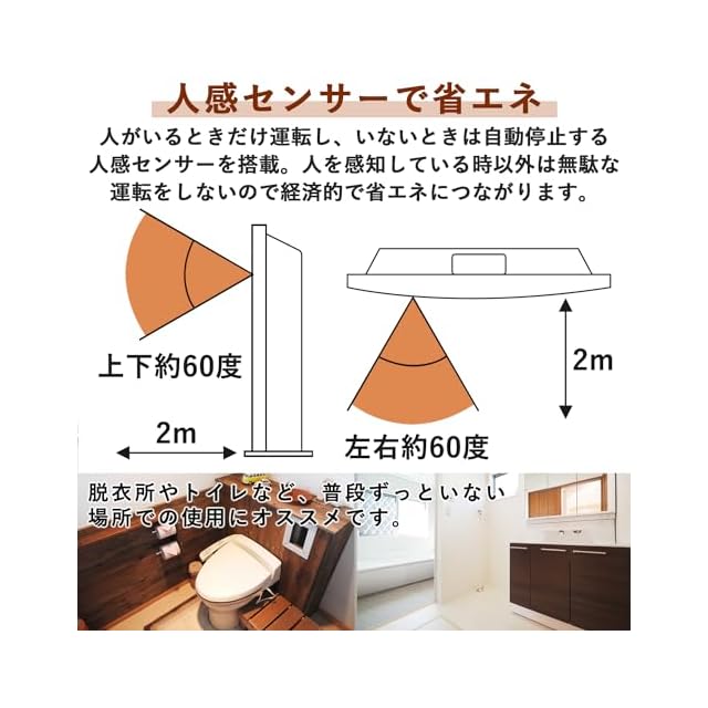 【省エネタイプ】人の動きを感知して自動で電源ON/OFFする人感センサーとセンサーで設定した温度を保ちながら運転する温度センサー搭載で、無駄な運転をせず、省エネに繋がります。