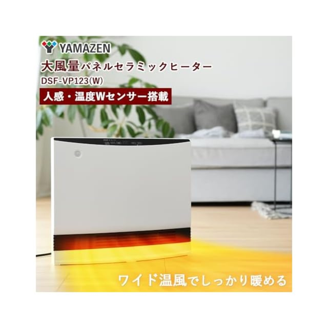[山善] セラミックファンヒーター セラミックヒーター 大風量 ワイド 人感センサー付 温度センサー付 省エネ 1200W 温風3段階切替 切タイマー 足元 ホワイト DSF-VP123(W)