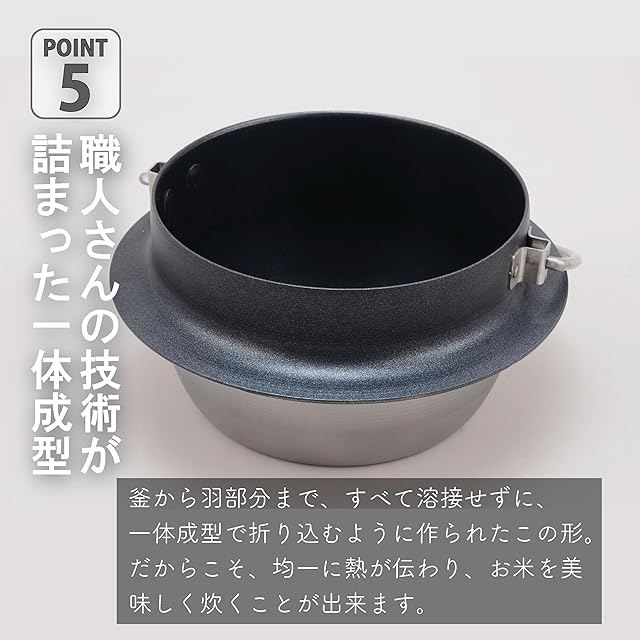 商品名:クラッド 超羽釜 舞 3合炊 2層鋼 炊飯 白米 釜飯 キャンプ アウトドア 蓋 土鍋 直火ok IH対応 日本製 燕三条