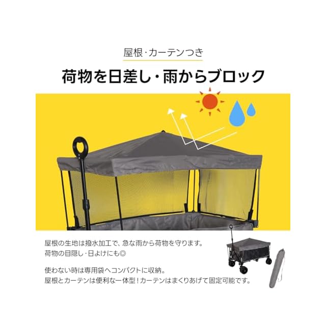 [クイックキャンプ] おでかけワゴン マルチキャリー アウトドア 屋根付き カーテン お散歩カート 大容量 190L 荷物 折りたたみ ファミリー BBQ