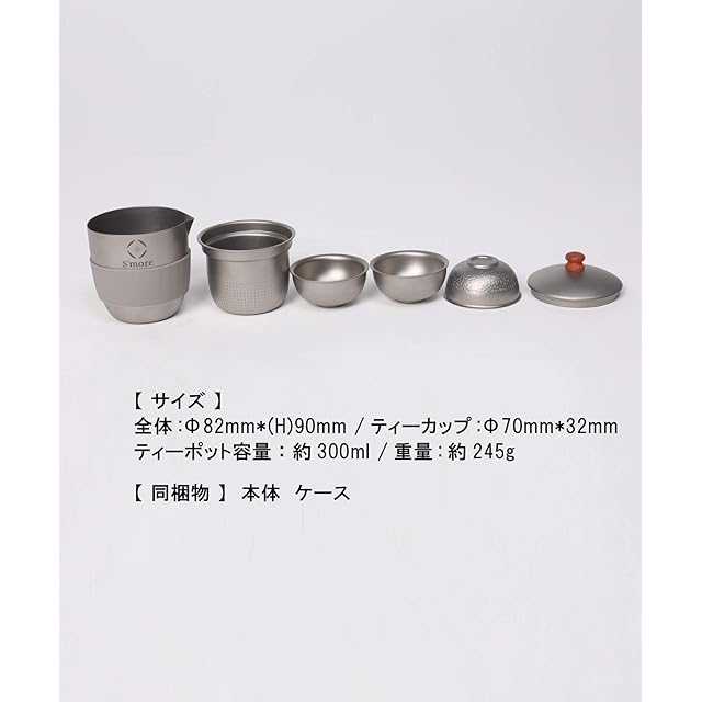 商品名:S'more(スモア) Titanium Tea Coze チタン アウトドア 5点セット コンパクト キャンプカトラリー ピクニック バーベキュー 携帯用 食器 収納ケース付き 【ティーポット・ストレーナー・カップ3つの合計5点セット】