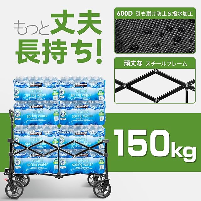 【リスクゼロのお買い物体験を始めよう】 頑丈なステンレススチールフレームを採用した折りたたみ式キャンプ キャリーワゴンは、耐久性があり、最大150キログラムまでの重量を支えることができますので、使用中の安定性について心配する必要はありません。また、耐引裂き性の高いオックスフォードクロスを特別に厚くし、簡単に取り外して洗うことができるため、お手入れもラクラクです。Hikentureはアウトドア製品開発で長年の経験を持つプロフェッショナル・ブランドです。 一年間を提供し、いつでもお客様をサポートいたします。