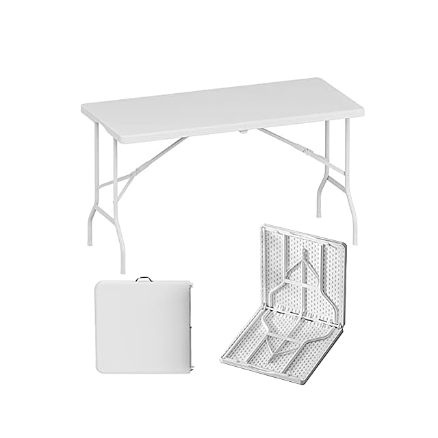 Kaniya 150cm 折りたたみ テーブル アウトドア 作業テーブル ポータブル キャンプ テーブル 簡易 作業台 折畳み 簡単組立 耐荷重120kg 室内 屋外 レジャー キャンプ ピクニック用(ホワイト)