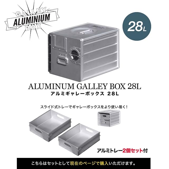 FIELDOOR アルミ ギャレーボックス 28L & アルミトレー2個セット コンテナボックス アルミボックス アウトドア インテリア 収納 航空機 機内食 運搬 飛行機 工具入れ キャンプ 物置 ロック スタッキング可能
