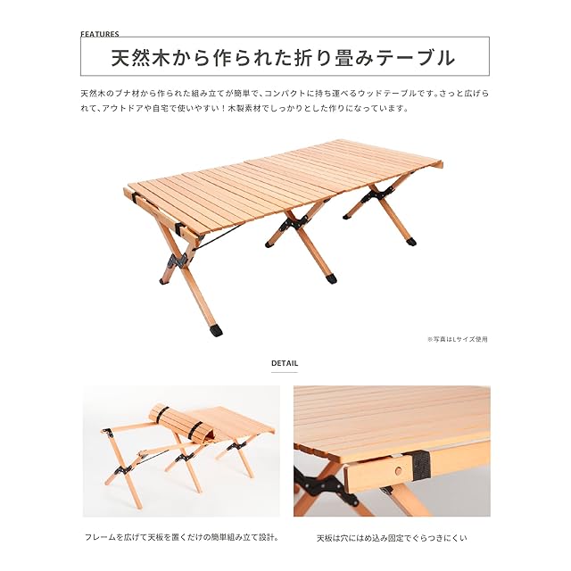 S'more(スモア) Woodi Roll Table キャンプ テーブル ウッドロールテーブル 木製 アウトドア テーブル 折りたたみ (90cm)