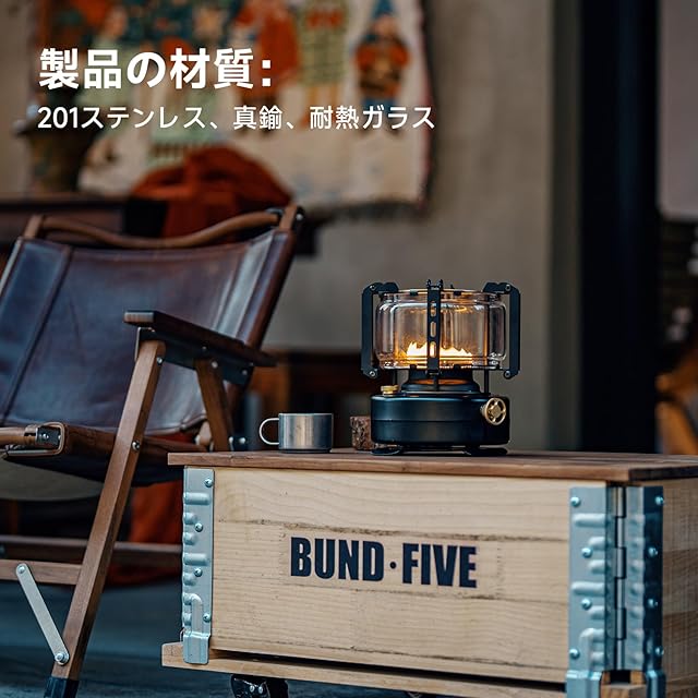 高品質素材で耐久性抜群:201ステンレススチール、黄銅、耐熱ガラスを使用し、頑丈で長持ち。30kgまでの耐荷重設計で、安定性も抜群。キャンプやアウトドアでの使用に最適です。