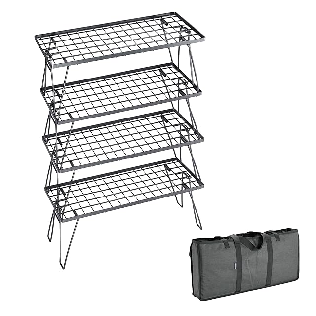 材質:スチール黒メッキ(こちらはミニマルラック 4脚の販売となっております。通常のフィールドラックより天板の幅が狭く、レイアウトが窮屈なキャンプスペースにも合わしやすいサイズになります)。