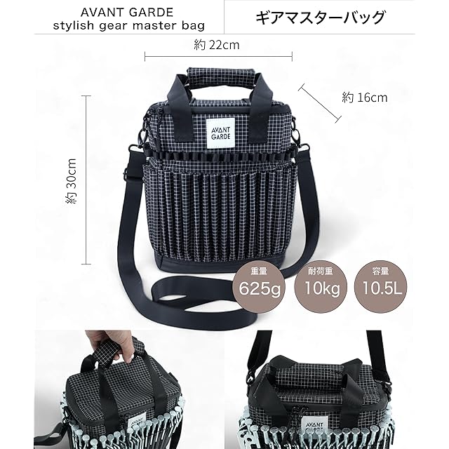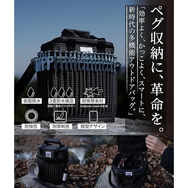[AVANT GARDE] キャンプ 収納ボックス ペグケース 縦型 10.5L 大容量 防水 高級生地 高耐久 多機能 衝撃吸収 効率よく設営 保護 ペグ 30cm ショルダー付き 22×16×30cm カメラ ランタン バーナー CB缶 ツールボックス ギアバッグ アウトドア BBQ 旅 日常 ブラック 【設営時間を短縮】