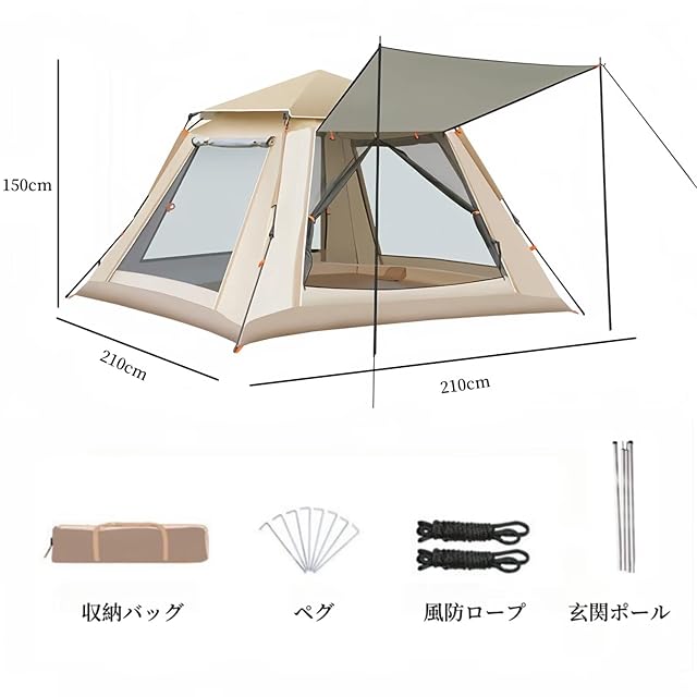 【用途】ツーリングテントとして、ビーチ、釣り、運動会、遠足、花見、野外フェス、公園、キャンプ、フィッシング、ハイキング、スポーツイベントなどの屋外場合に適用されています。設置も持ち運びも簡単なのでいろんなシーンで大活躍。
