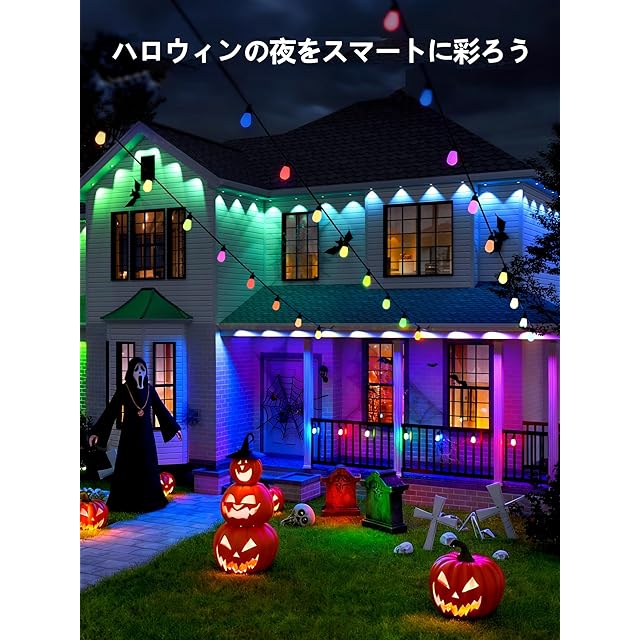 【電球色& RGBIC対応+APP調光調色・アレクサ音声対応】電球色とRGBカラー搭載で、アプリで操作できる様々な照明パターンもあり、お好みに合わせて雰囲気作りの照明として最適。アプリで無段階調光調色と自己生成できる豊かな点灯モードの切り替えもできます。雰囲気作りのキャンプ、ポーチ、デッキ、披露宴などのアウトドアにもAPPで遠隔操作ができて非常に便利です。さらに、AlexaやGoogleアシスタント音声コントロールにも対応。手が離せない時でも、声でON/OFFや調色/調光が可能です。