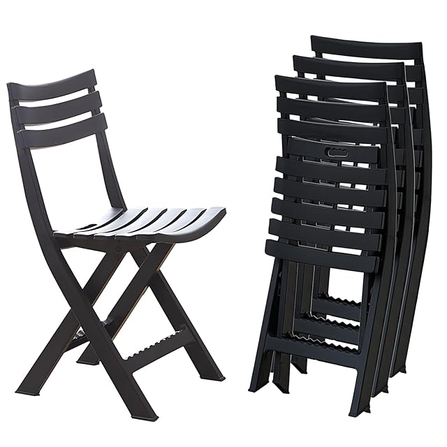YASICA ガーデンチェア 4脚セット 折りたたみ椅子 プラスチック アウトドアチェア 背もたれあり 持ち運び お庭・ベランダ・バルコニー用いす 携帯椅子 シンプル 軽量 キャンプ お釣り バーベキュー イベント 簡易 折りたたみチェア イス おりたたみ ダイニング ベランダ 屋外 庭 アウトドア (ブラック)