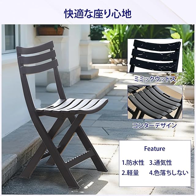 <p>商品の特徴<br> <p><br> <p>1.取っ手付き<br> <p><br> <p>使用しないときは直接折りたたみ、スペースを取らず、簡単で移動し、収納ができます。<br> <p><br> <p>2.防水性<br> <p><br> <p>優れたPP素材で作られ、防水性と汚れに強いで、水をこぼしても、布で拭くだけで綺麗になります、雨の日でも気にせずに外に置いておけます。<br> <p><br> <p>3.足を置ける横棒<br> <p><br> <p>座面下には足を置くのに便利な横棒があり、長時間座ってもよりラックスできます。<br> <p><br> <p>4.折りたたむと立って置けます。<br> <p><br> <p>折りたたむと立って置けます、どこでもすぐおりたたんで収納できます。<br> <p><br> <p>5.適な座り心地<br> <p><br> <p>緩やかにカーブした座面と背面がお尻と背中を包み込み、座り心地抜群です。長時間座っても疲れにくく長くお使いいただいてもヘタリにくいです。
