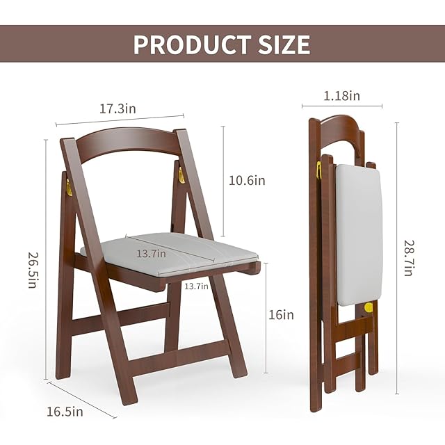天然木製折りたたみ椅子 北欧風デザイン・クッション付き座面・簡単収納・家庭/オフィス/アウトドアイベントに最適なコンパクトチェア・2脚セット