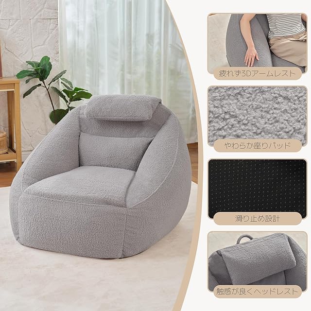 【使いやすさを追求したデザイン】ソファ本体はユーザビリティを重視した設計。底部にはダブルジッパーを採用しており、カバーの取り外しが簡単で洗濯も可能。滑り止め素材の底面により、安定感と安全性を高めています。上部にはハンドル付きで、室内での移動もスムーズです。
