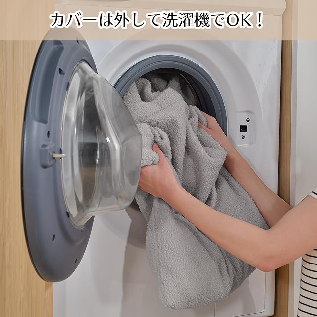 【やわらかくやさしい素材】表地にはふんわりとした手触りが特徴の粒子フリース生地を使用。温かみのある質感で、まるで包み込まれるような心地よさを実感できます。柔らかさだけでなく耐久性にも優れており、長く使ってもへたりにくいのが特長。カバーは取り外して洗濯機で洗えるため、お手入れも簡単です。