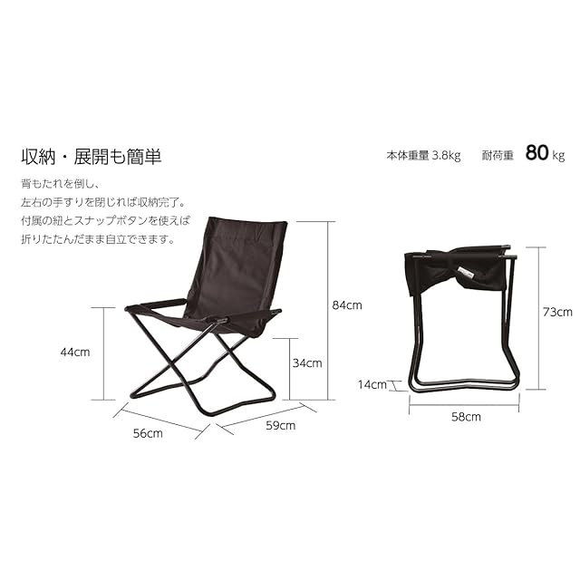 商品名:onway オンウェー チェアエックス OW-5659FL-BLK 折りたたみ アウトドア キャンプ ハイバック ソロ 室内 フォールディング 椅子 テレワーク 疲れない 持ち運び 携帯便利 釣り バーベキュー 野外 シンプル