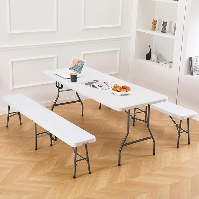 KAIHAOWIN ガーデンベンチ 長椅子 185x30x43cm 折りたたみベンチ アウトドア 室内・屋外用 庭 ピクニックキャンプ パーティー ホワイト