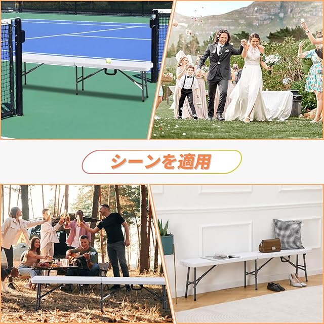 当社の6フィート白いプラスチック折りたたみベンチ(屋外ベンチ)は、屋内外での座席ニーズに対応するように設計されています。このアウトドアベンチ折り畳みは、12"×36"のコンパクトなサイズに簡単に折りたたむことができ、収納や運搬も楽に行えます。頑丈な金属フレームと高品質なプラスチック製の座面で構成されており、どんな環境でも安定したサポートを提供します。一体型のハンドルが付いており、ピクニック、キャンプ、屋外イベントへの移動も簡単です。安全なロック機構により、使用中にベンチが安定し、安全に使用できます。食事、靴の履き替え、ピクニック、キャンプ、スポーツイベントなど、さまざまなシーンに最適で、キャンプ長椅子としても活躍する多用途なアイテムです。