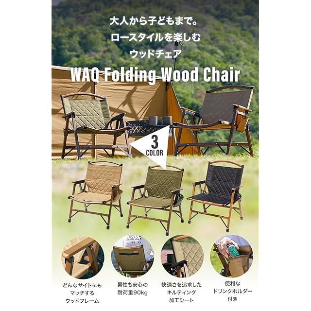 【WAQ Folding Wood Chair】大人から子供まで、ロースタイルを楽しむウッドローチェアが登場。【細部まで拘ったウッドチェア】WAQの ウッドチェア はドイツビーチを採用したウッドフレーム、心地よい座面加工を施したキルティング加工シート、飲み物を入れられるホルダー付き、耐荷重90kgのロータイプチェアです。