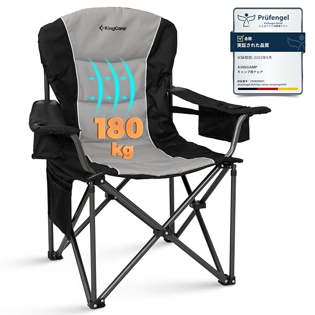 KingCamp キャンプ チェア ハイバック 幅96cm 頑丈 耐荷重180kg コットン入り 保冷バック付き 折りたたみ椅子 アウトドア 釣り 運動会