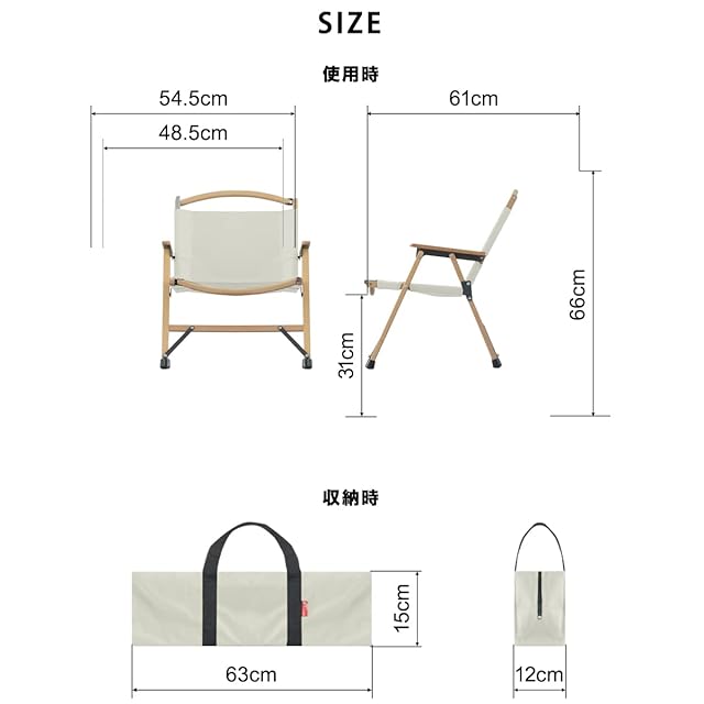 ✅【商品詳細】 サイズ:使用時 : (約)54.5cm×61cm×66cm、折りたたみ時 : (約)63cm×12cm×15cm 材質:キャンバス(コットン) / 天然木(ブナ材) 他 重量:(約)3.65kg、耐荷重:100kg 付属品:チェア本体 / キャップ / 収納バッグ / 取扱説明書(日本語) ※商品は、モニターによって色合いが異なって見える場合があります。 また、仕様・デザインは改良のため予告なく変更することがあります。