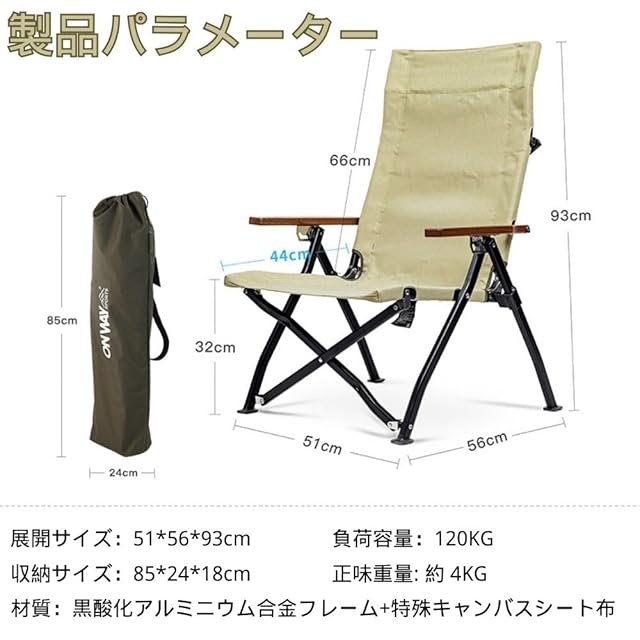[高めの背もたれ設計で座りやすい】高めの背もたれ設計で、背もたれの高さは66cmあり、頭をしっかり支え、カバー感があり、長時間横になっても疲れません。 アウトドアチェアのシート幅は約44cmです。キャンプ リクライニングチェアの座面奥行きは44cmで、体にフィットし、包み込まれるような座り心地です。 背の高い人でも快適に使用できます。背もたれにはキャンプ用品、調理器具、スナックなどを収納できるメッシュ収納袋が付いています。
