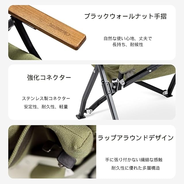 [耐荷重120kg、安定性抜群】キャンプ リクライニングチェアのフレームは2.1mm厚のアルミチューブ材を使用し、X字型のデザインは頑丈で耐久性があり、全体的な安定性を高めています。 滑り止めの足を装備し、安定で滑りにくく、様々な地形に適しています。