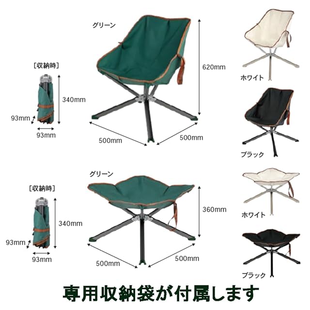 【コンパクトサイズと軽量】: 持ち運びしやすいように設計されたこのキャンプチェアは、折りたたむとコンパクトなサイズになり、重量はわずか1.3㎏です。 折りたたんだ状態は、大きさわずか9.3㎝×9.3㎝×36㎝で、持ち運びに最適です。