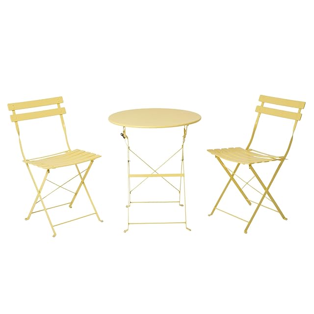 ガーデンマスター(Gardenmaster) ガーデンテーブル&チェア 3点セット 折りたたみ コンパクト 屋外 庭 ベランダ アウトドア ガーデンテーブルセット HKT-60+HKC-46 イエロー