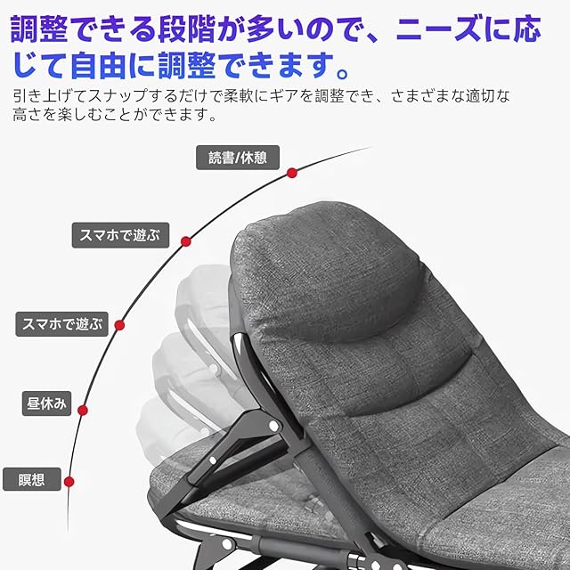 簡易ベッド 5段アジャスタブル 折りたたみベッド 静音設計 軽量 仮眠 庭 車中泊 日光浴組み立てるは不要 通気性アウトドア用 [並行輸入品]