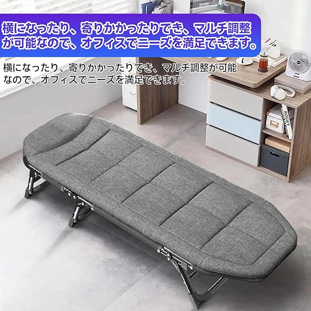 ✅【5段階アジャスタブル 折りたたみベッド】組み立不要、コットを簡単に広げ、60秒で設置できます。ベッドヘッド部位は5段階調整でき、自由的にコット/チェア/ベンチへ変換できます。人間工学に基づいたシートロープ連結デザイン、体圧を均一に分散させて、寝心地が良いです。【サイズ・素材】展開サイズ:200×62×32cm;収納サイズ:84×62×8 cm;静圧荷重140kg、衝撃荷重160kg。高密度600Dオックスフォードメッシュ生地を採用して、張力が強く、通気性と耐久性兼備、他のコットと比べて、安定性がもっと良いです。メッシュ生地は夏暑にもこもりがちな熱や湿気を外に逃します。