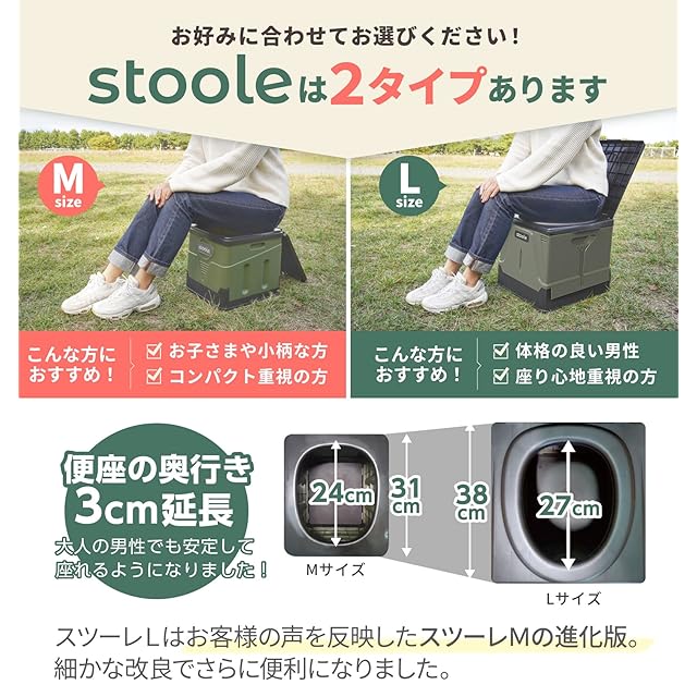 スツーレ® 【防災グッズ大賞受賞】 簡易トイレ ポータブルトイレ 防災からアウトドアまで 携帯トイレ 介護 耐荷重100㎏ (a.グリーン/Mサイズ)