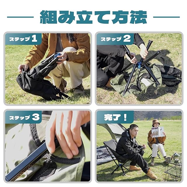 【わずか5秒で簡単組み立て】複雑な組み立ては不要!革新的な事前インストールされたクイックプルフレームシステムにより、スツールのセットアップや収納がわずか5秒で完了します。手間のかからないアウトドア体験をお楽しみください。