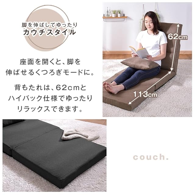 タンスのゲン ソファーベッド 3WAY 1人掛け 幅60cm クッション付き 座椅子ソファー フロアソファー 座椅子 ロータイプ ソファ 15210053(100440)