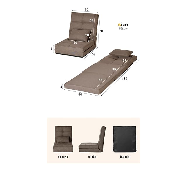 【サイズ】ソファ時:幅60×奥行60×高さ68cm / ベッド時:幅60×奥行180×厚さ8cm / クッション幅40×奥行28×厚さ11cm