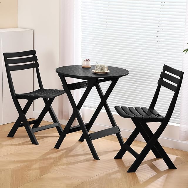 TAO ONE ガーデンテーブル 3点セット 折りたたみ椅子・テーブルセット アウトドアチェア 持ち運び 組み立て不要 プラスチック お庭・ベランダ・バルコニー用 椅子セット ブラック