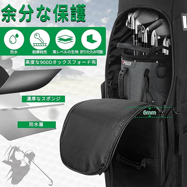 [持ち運びが簡単]-- ゴルフトラベルカバーは、複数のハンドル、ショルダーストラップ、ゴルフ用品、靴、電話などを収納できる6つのバッグを追加することで、さまざまなニーズを満たすように設計されています。 バスステーションや空港でバッグを簡単に持ち運べます。