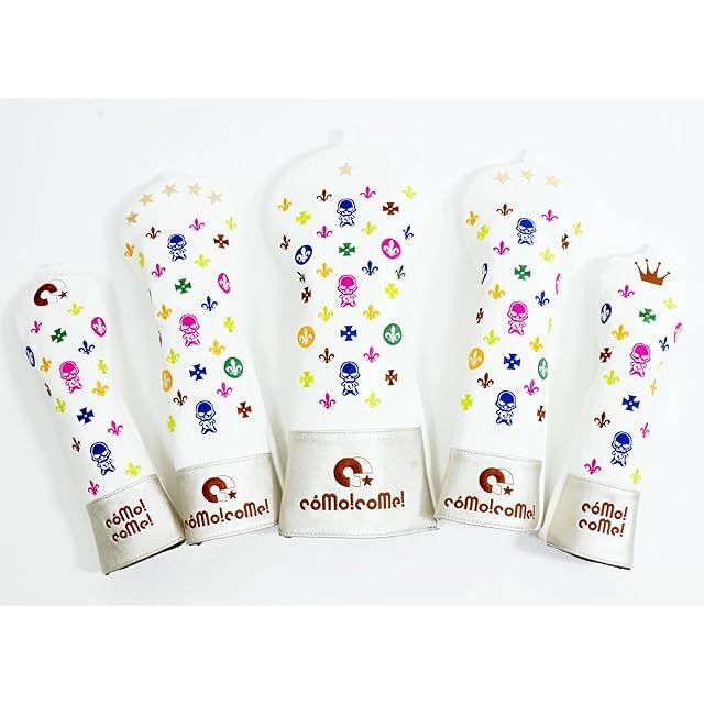 コモコーメ ヘッドカバー 5本 セット ドライバー / フェアウェイウッド x 2 / ユーティリティ x 2(ベビすかホワイト)