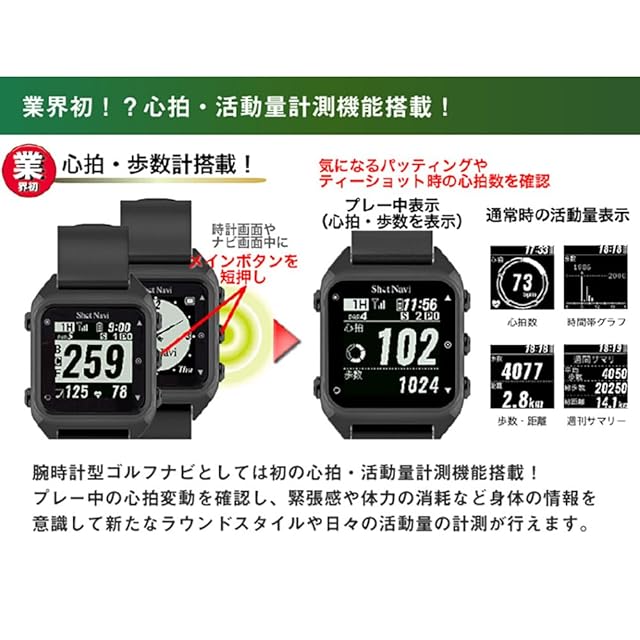 ◆心拍・活動量計測機能付きのGPSゴルフウォッチ
