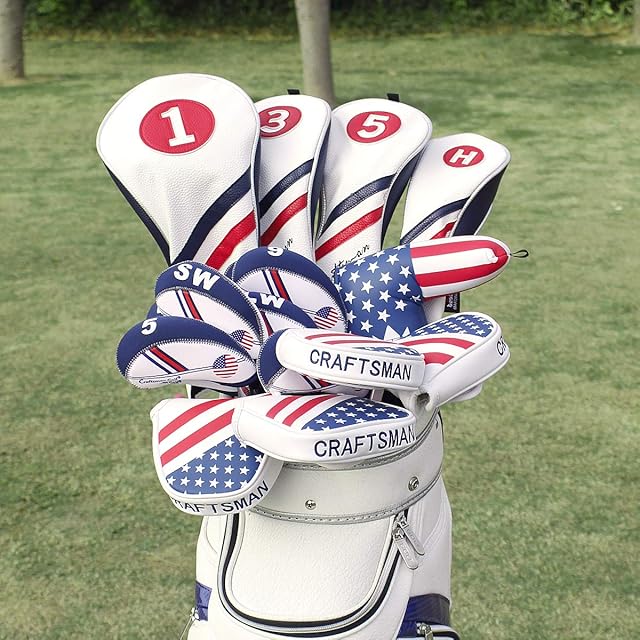 CRAFTSMAN(クラフトマン)ゴルフウッドカバー ヘッドカバー クラブカバー ドライバー用・フェアウェイウッド用・ハイブリッド用 番号タグ付き 4個セット(135H)三片式設計 (ホワイト)
