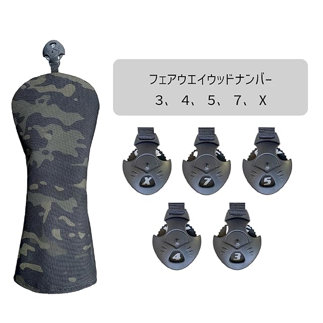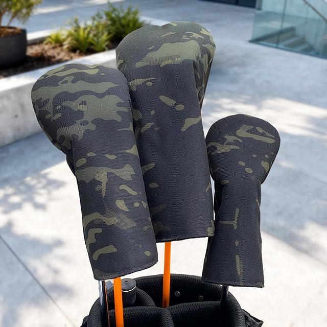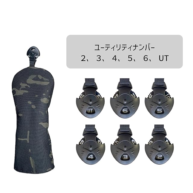 ゴルフ ヘッドカバー ドライバー ヘッドカバー ウッド カバー ユーティリティ ゴルフ UT カバー 番手タグ付き 防水仕様 ドライバー440cc 460cc 用 迷彩02 (黒迷彩, UT)