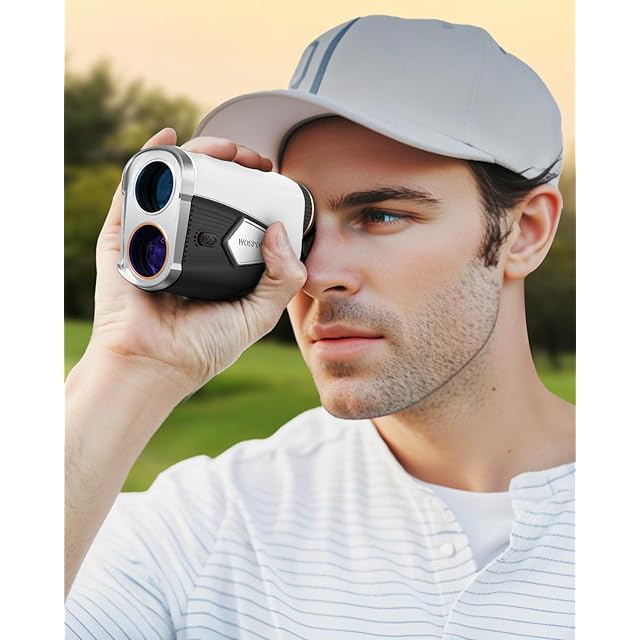 Wosports ゴル距離計 距離測定器 ゴルフ用品 測量機 計測器 高速測定 最大1500yd 光学7倍望遠 高低差補正 スロープ補正 ピンロック機能 バイブレーション機能 高透過LCD液晶 超軽量 充電式 ケース付き 日本語取扱説明書 (ホワイト)