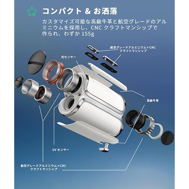 ⛳【コンパクト&高級なデザイン】大人気のS2シリーズは約155gです、小型・軽量ボディーで手のひらに収まるコンパクトサイズ感とスタイリッシュな外観を兼ね備えております♪ 高級牛革とアルミニウム素材を採用し、高級感の溢れる輝きや他の素材が敵えない柔らかな光沢感を両立し、お洒落で洗練されたデザインと手に馴染む軽さで毎回の測定が快適にします。