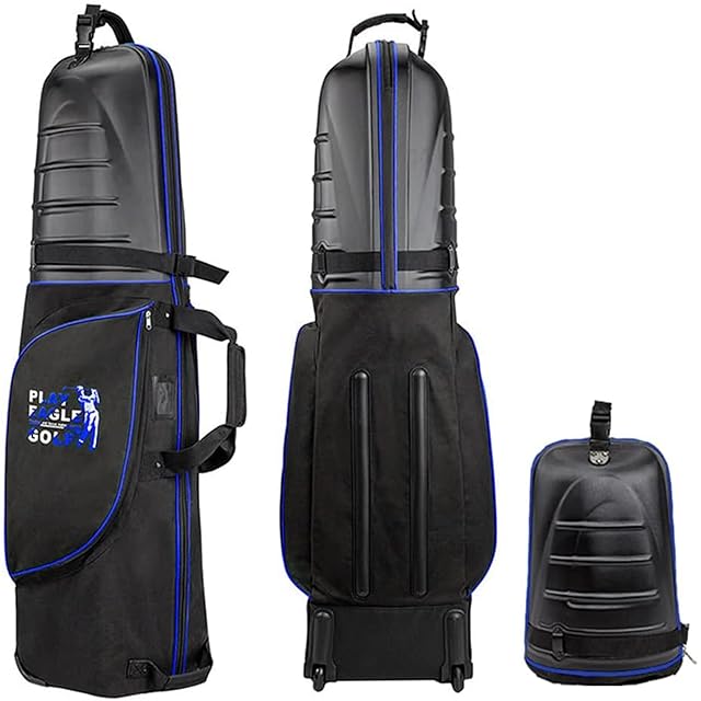 PlayEagle ゴルフバックカバー ゴルフ用トラベルカバー ホイール付き ハードシェル付き 折りたたみ式 ハードケース キャスター付きトラベルバッグ ブルー